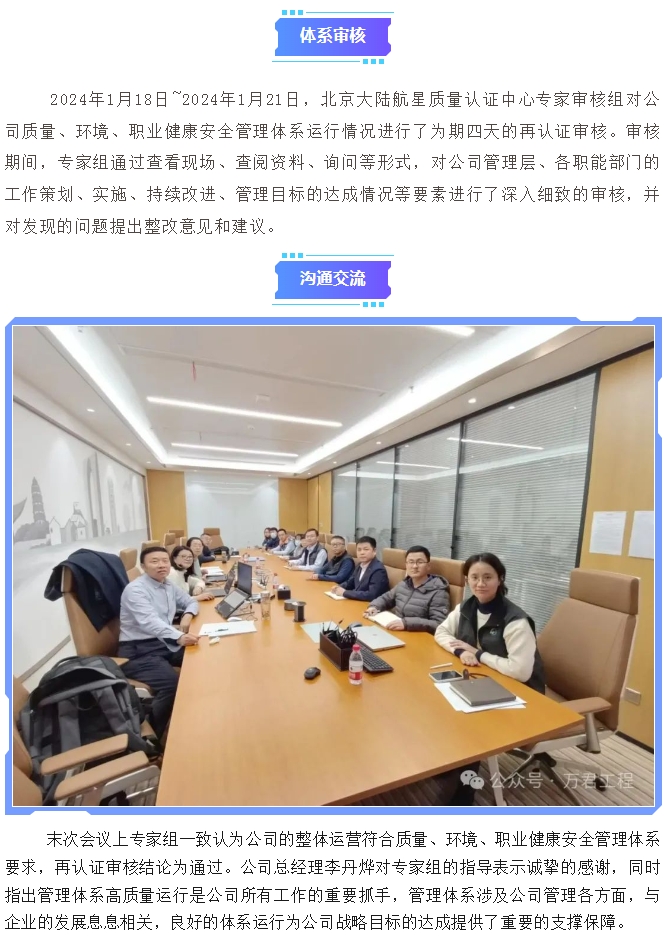 公司質量、環境、職業健康安全“三合一”管理體系順利通過復審認證