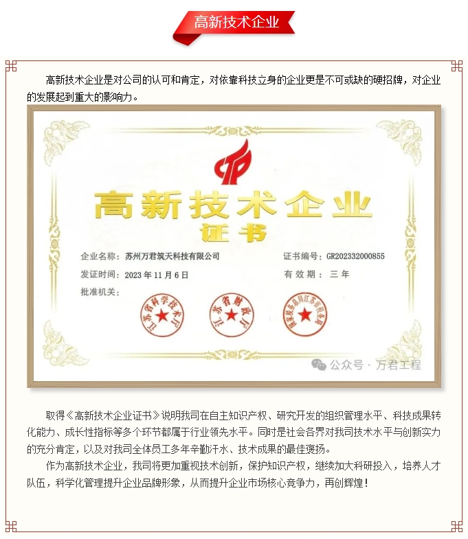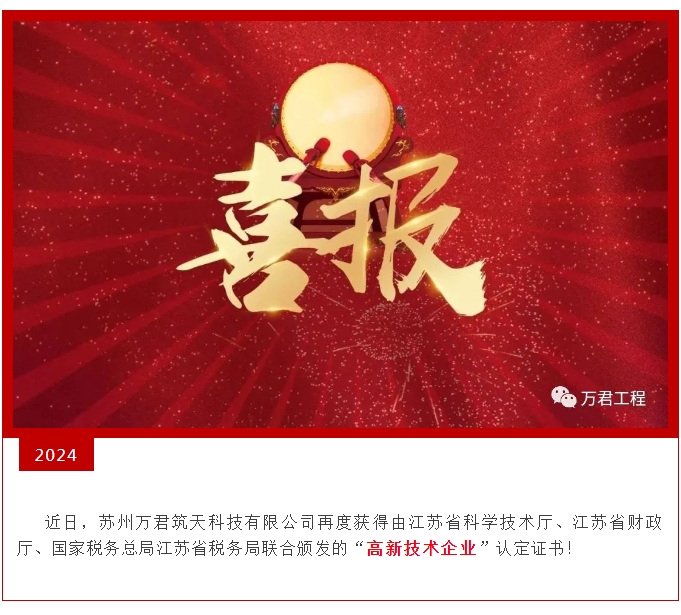 喜報!熱烈祝賀蘇州萬君筑天科技有限公司再度獲得“高新技術企業”認證!