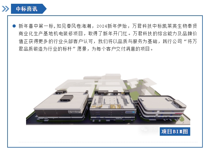 新年第一標,萬君科技中標凱萊英生物奉賢商業化生產基地機電裝修項目